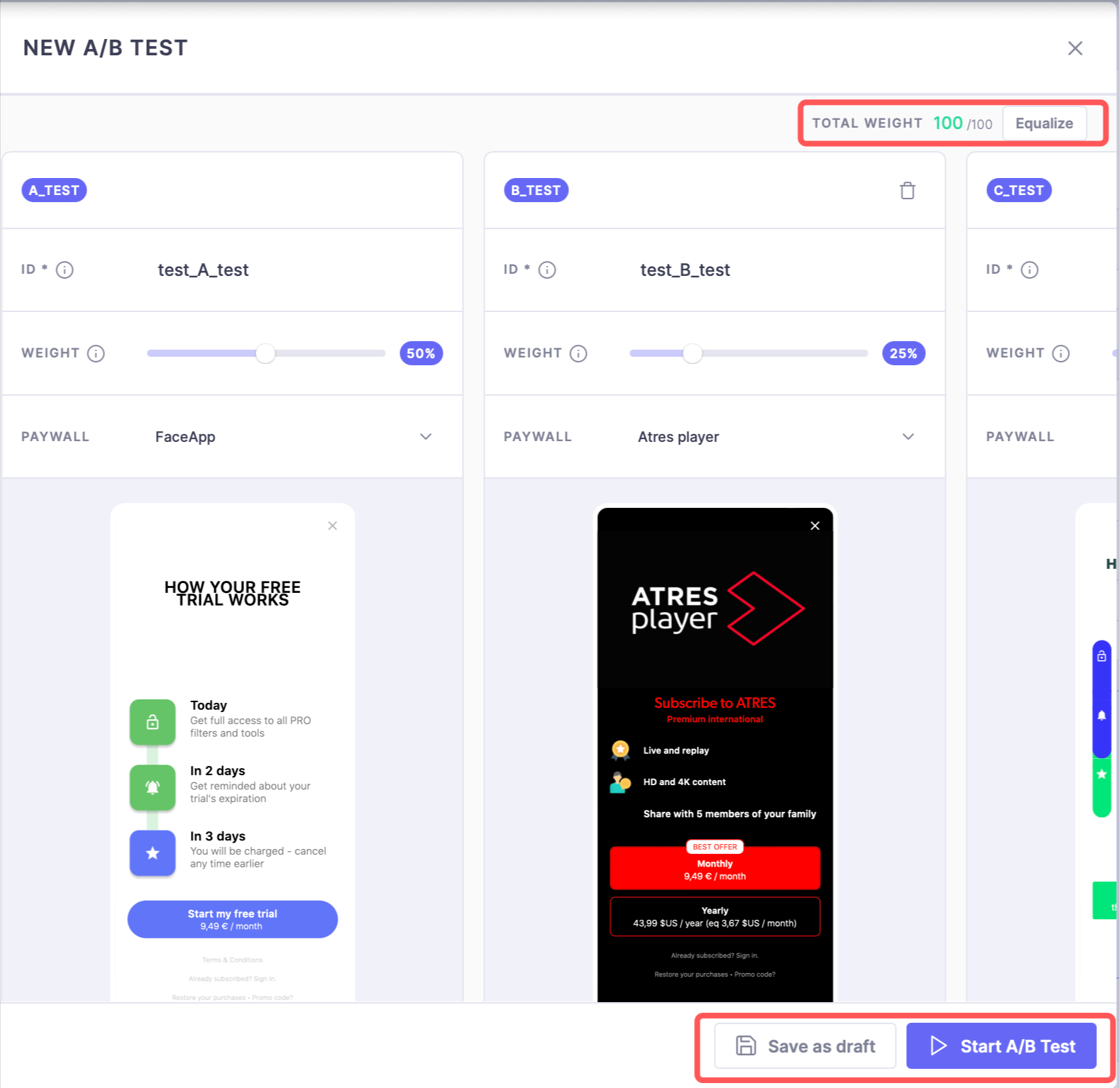 Step 3: Select the paywall for A/B/C test respectively