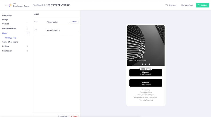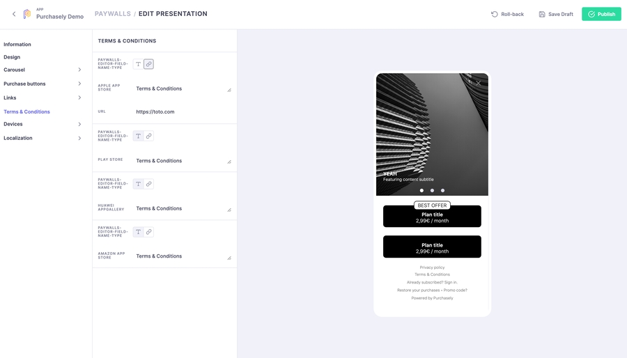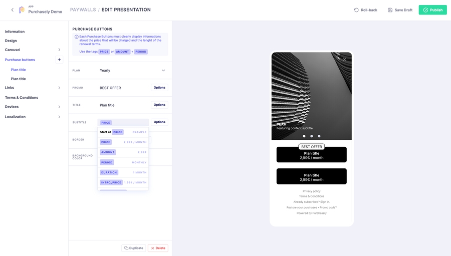 You can readjust there all parameters of Paywall and Purchase Buttons